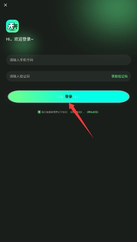 1、打开天天分身APP,输入手机号获取验证码,填写验证信息并勾选用户协议后完成登录。