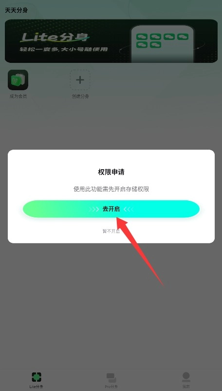 3、根据系统提示开启必要权限,等待片刻即可成功生成分身应用,实现多账号同时登录。