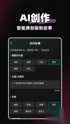 应用借助先进AI技术,支持一键生成功能,可进行文章提取、短视频文案提取,还具备官方平台推文授权服务。同时,能深入分析角色关系、剧情走向及关键场景,为用户创作出精准且生动的解说文案。