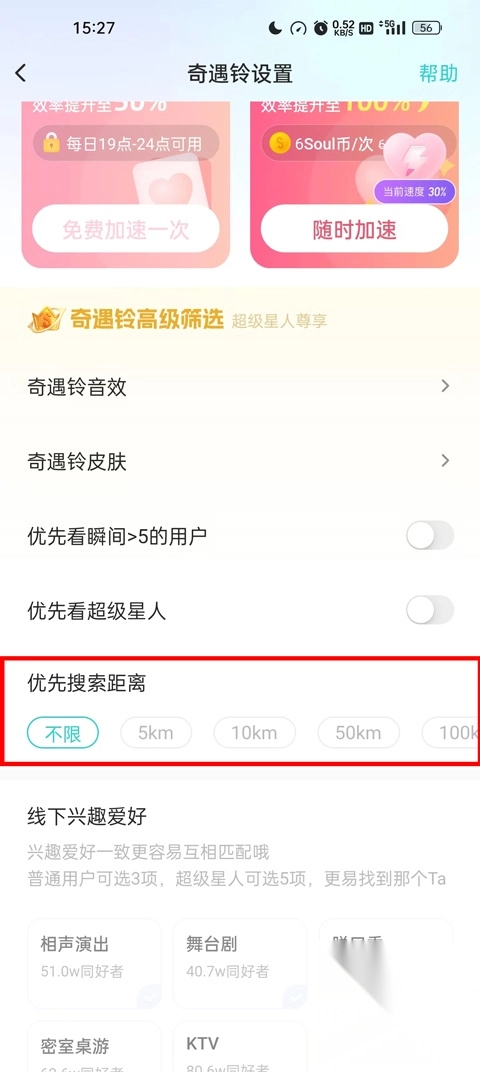 设置奇遇铃的距离,等待系统为你匹配恋爱铃,一般都是附近的人;