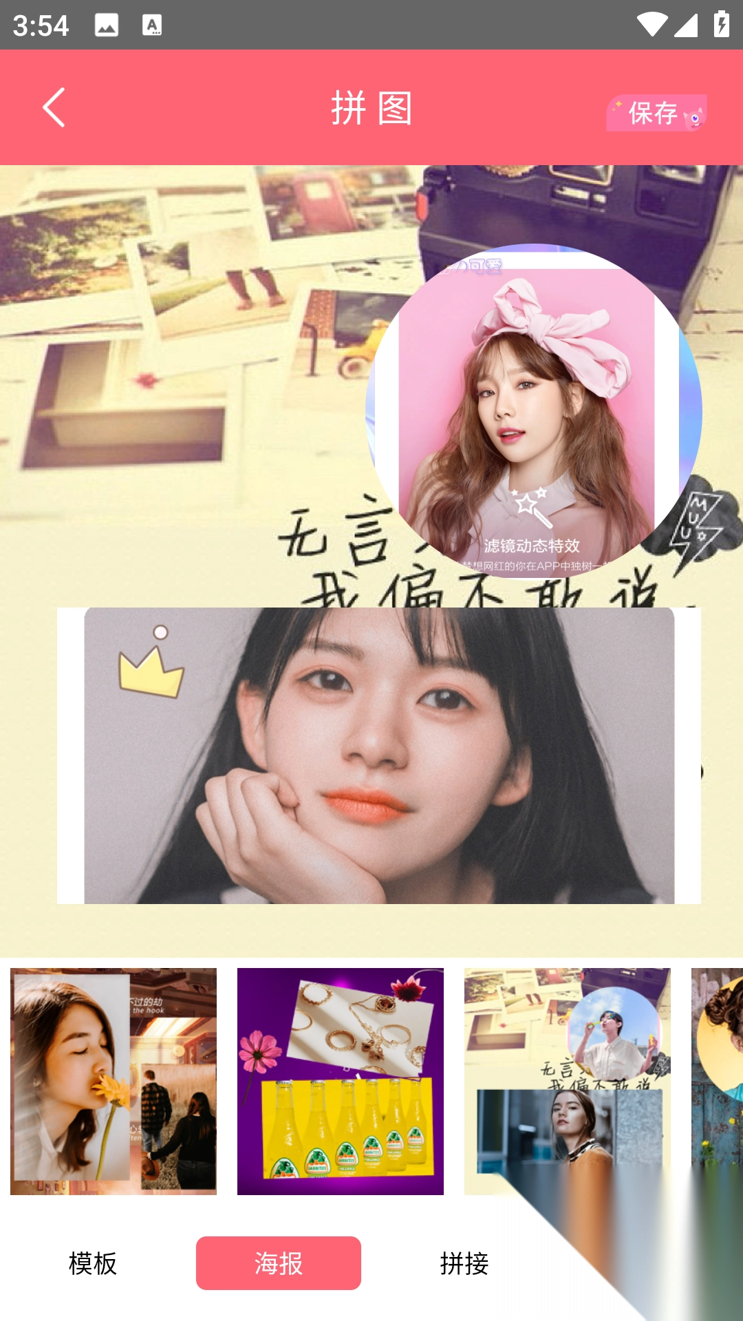 2、点击【模板拼图】,从相册中挑选图片。