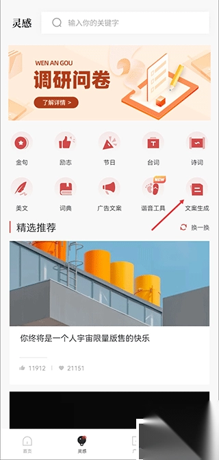 1. 开启APP,于首页寻觅“文案生成”功能,随后点击该功能。