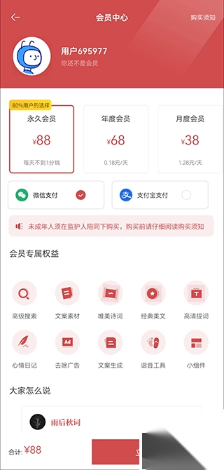 3、开通会员后,就能根据关键词自动生成高质量文案,写东西更轻松。
