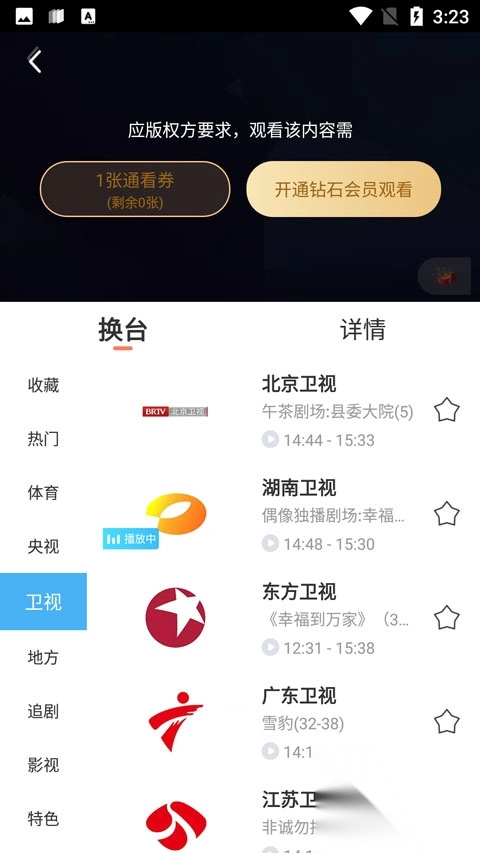 4、在卫视中,可以观看各个电视台的卫视,像北京卫视、湖南卫视、东方卫视等等