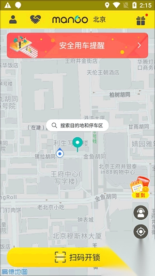 进入app后看自己附近有没有芒果电单车,找到后点击下方的扫码开锁。