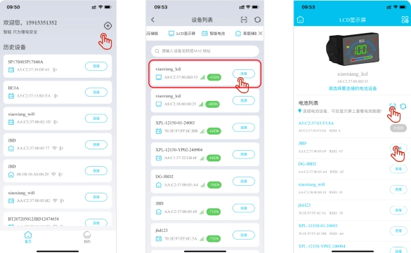 STEP3:APP 与 LCD 连接成功,进入 LCD 显示屏配对电池页面;