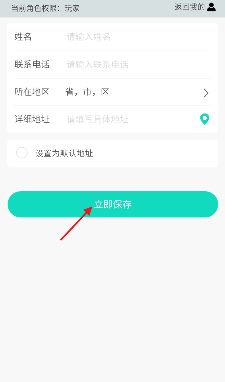 4、最后在新地址页面填写详细地址信息,点击 “立即保存信息” 完成添加。