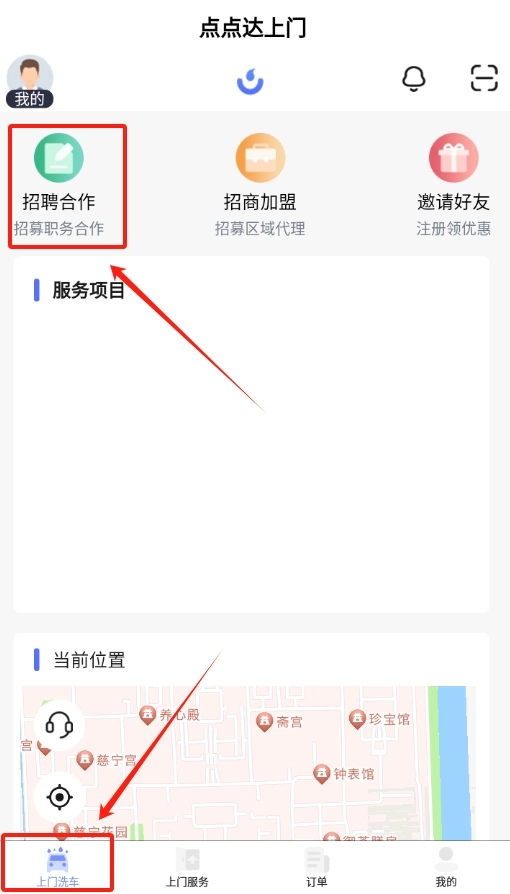 2、登录成功后返回首页,在首页找到 “招聘合作” 选项,点击进入合作页面。