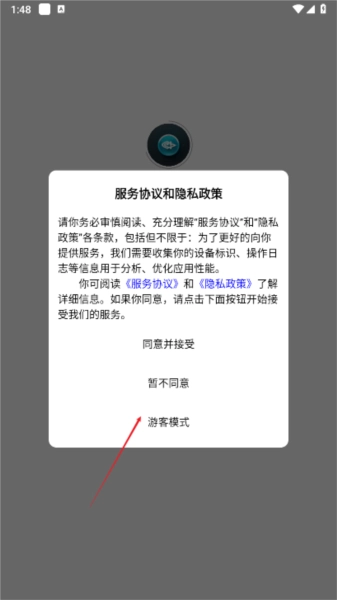 1、点击使用游客模式