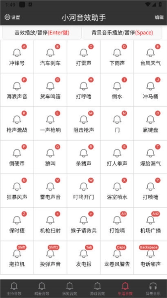 2、快捷键操作,支持手机连接键盘,使用键盘快捷键播放音效;