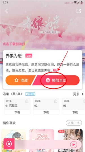 2、在养狼为患的页面,点击播放全部,会弹出登录提示;