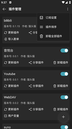 2、在插件管理页面,点击右上角的三个点,选择订阅设置。
