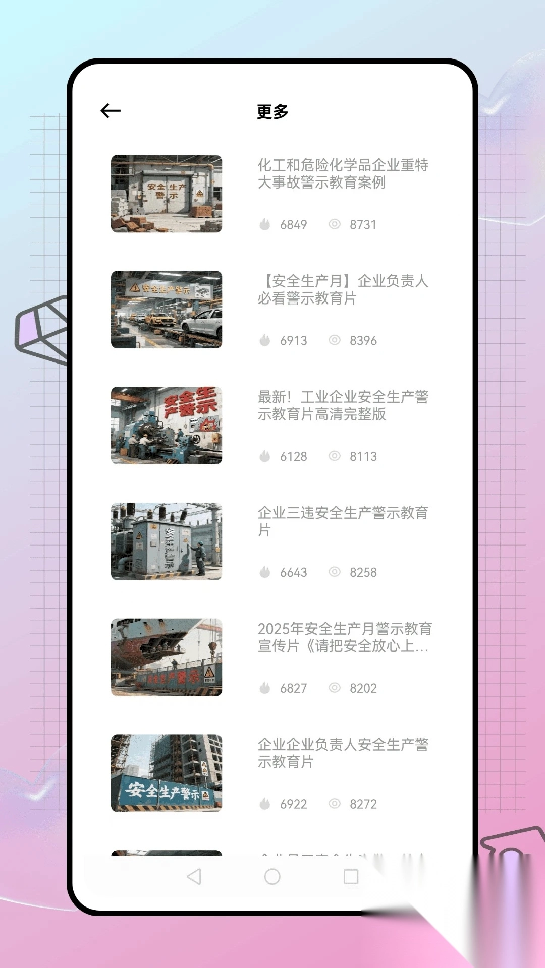 2、首页围绕“企业安全管理”,设化工、消防、电工等安全分类,还有安全生产警示案例。