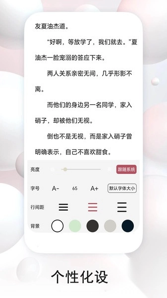 2、个性化阅读设置:用户可以根据自己的阅读习惯调整字体大小、背景颜色等,打造个性化的阅读体验。