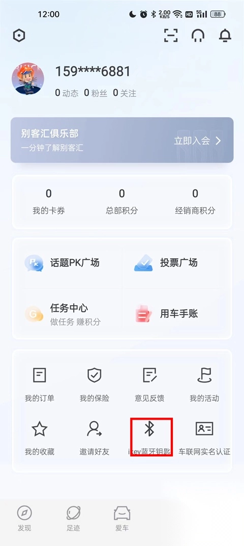 2、点击右下角我的板块,找到“ikey蓝牙钥匙”选项进入;