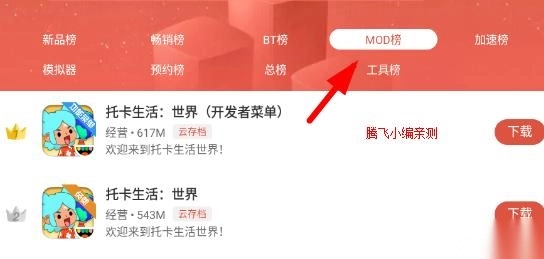2、点击“mod榜”,可以看到诸多已经被修改了的游戏;