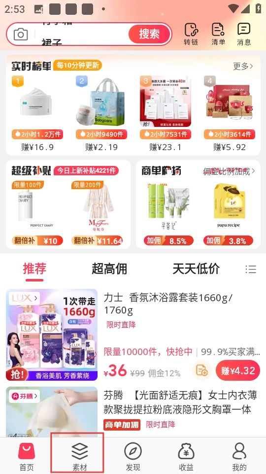 3、专属优惠聚焦:特别挑选超高佣商品以及独家秒杀折扣商品,助力用户迅速锁定高性价比好物。同时,会用心挑选适宜推广的商品,减轻用户分享与赚钱的难度。