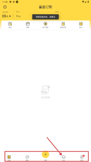 1、打开鲨鱼记账应用,点击底部对应图标,进入推荐页,探索内容发布功能。