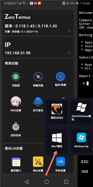 1、打开ZeroTermux,等待启动后右滑界面点击里面的QEMU。
