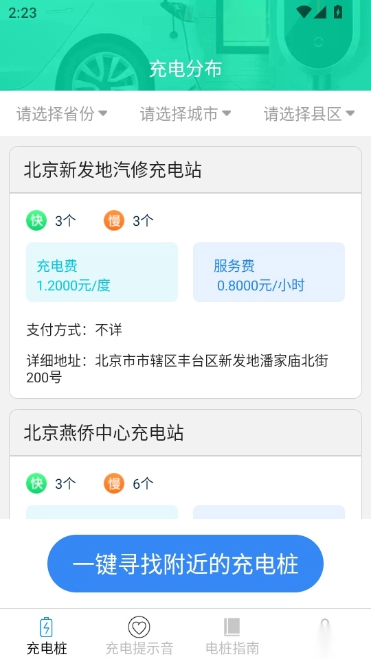 软件支持用户选择省份查询充电桩位置,特别简单;