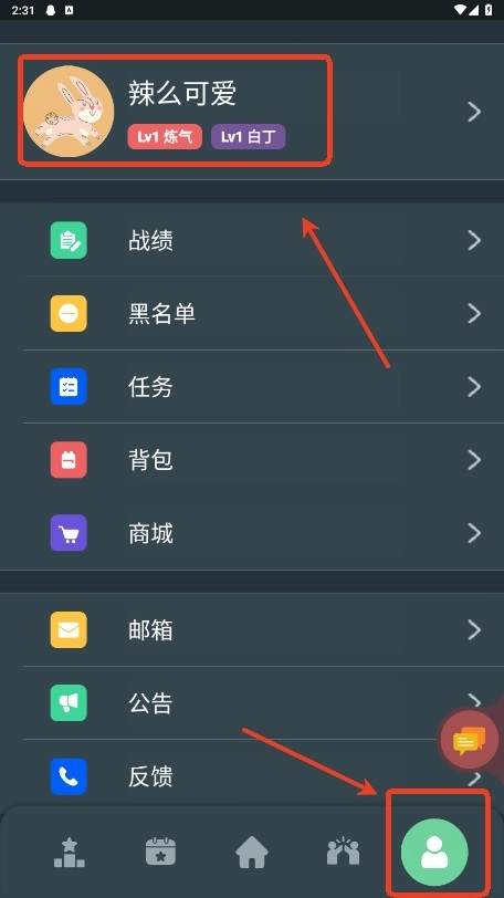1. 打开软件后,点击右下角的头像以及上方的账户信息。