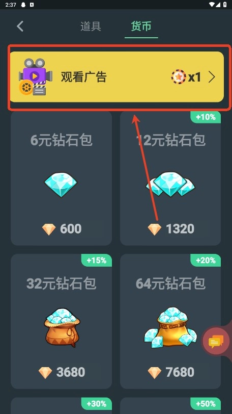 4.点击道具--会员,选择购买月卡或超级月卡。