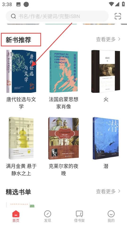 1、进入书香园区首页,在新书推荐区域找到想借阅的图书。