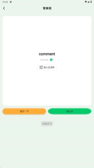 3、点击开始背诵,就能进入每日记忆板块,了解单词信息。