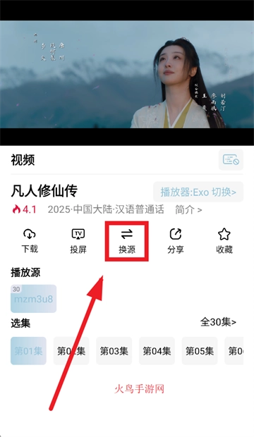 在想看的影视界面点击换源按钮