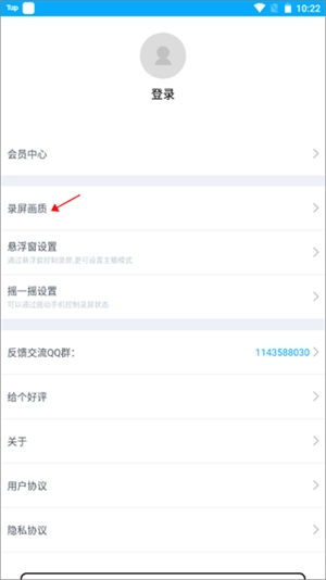 2、设置相关参数,点击上方的“录屏画质”。