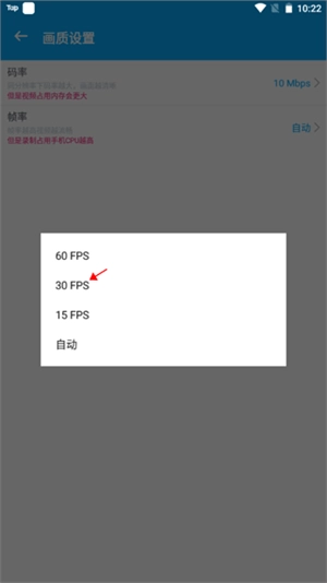 5、帧率越高占用的手机CPU越高,选择一个中等的帧率参数值。