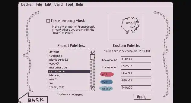 3、进入上色环节,我们第一步要选择画笔工具,该工具具备红、蓝、黄三种基础颜色。要是你想调整为其他颜色,只要点击上方的“options”来挑选即可。而左侧的“Preset Palettes”提供了预设的颜色效果,其中包含前景和背景的色调选取。