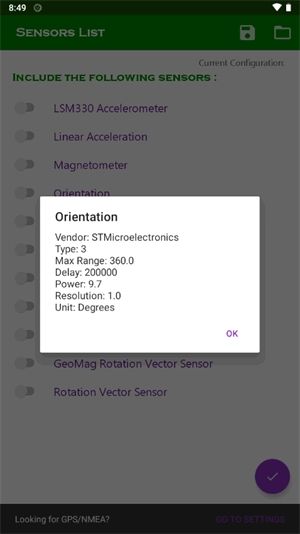 3、自定义传感器清单:可自行设定手机中传感器的类型以及数据流的传输方式。