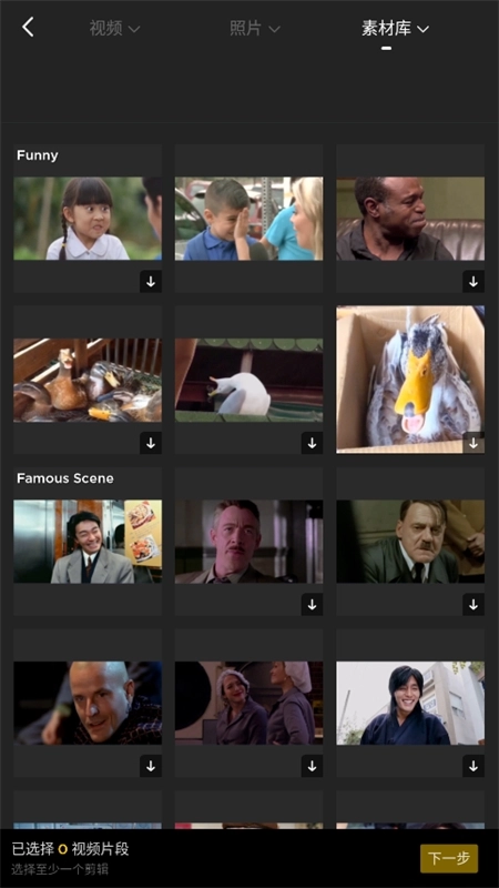 3、选择你要编辑的视频素材,也可以直接用微剪辑安卓版的视频资源;