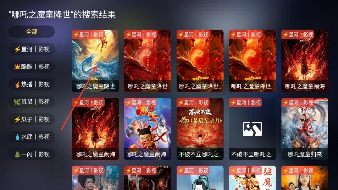 3.若您有想要观看的特定影片,可在搜索框输入影片名称,然后点击搜索结果里的影片。