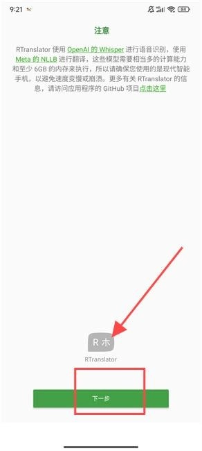 2、然后打开进入软件,在阅读完注意事项后点击“下一步”进入