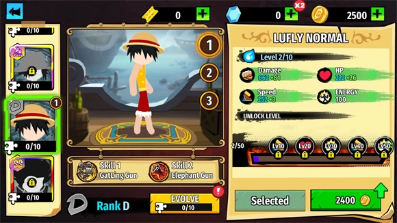 6、于主界面点击“heroes”,即可解锁新英雄,并对已有角色进行升级。