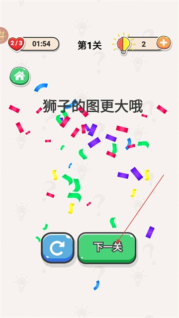 5、尽情尝试:答错不会扣分,而且能无限制重试。每次尝试失败,都意味着更靠近独特新奇的解题方法。在轻松愉悦的氛围里,感受试错过程中灵感如泉涌般迸发的乐趣。