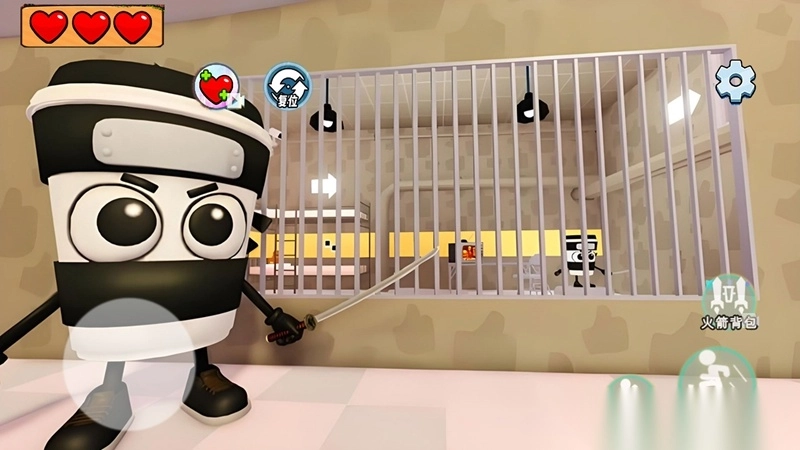 1通过滑动屏幕来操控角色进行跑、跳动作,躲避咖啡忍者的攻击,穿越监狱通道,在途中收集道具钥匙,进而解锁新区域。
