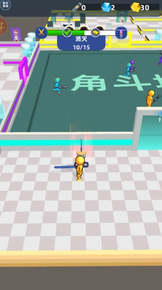 3、踏入战场后,与不同颜色的小人展开自由对战,同时收集砖块以及其他资源。