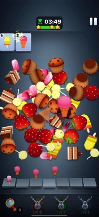 1. 进入关卡之后,认真留意屏幕上零散分布的3D物品,找出相同的三个。