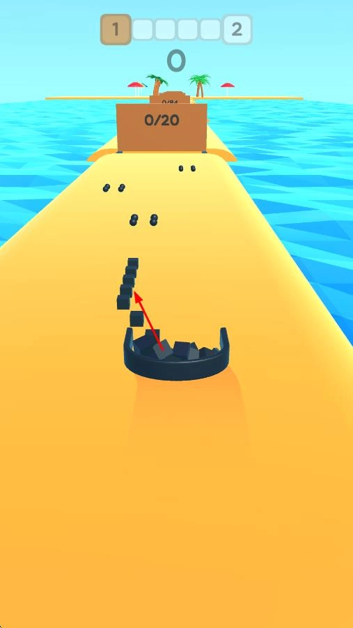 1. 操控容器收集黑色方块,以【0/20】为目标进行积累,稳步前行,防止方块掉落。