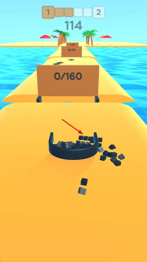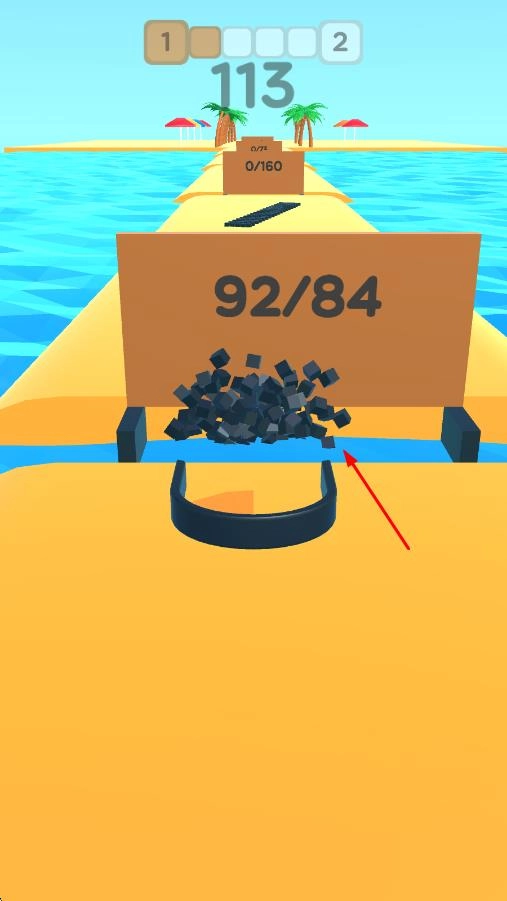 3、针对全新的【0/160】目标,持续对容器进行操控以收集黑色方块,务必留意使方块留存于容器之中,实现数量的高效积累。