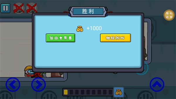 4、当两个角色均完成目标任务,关卡挑战即宣告成功,此时玩家能够获取金币奖励,这些金币可用于解锁更多武器道具。