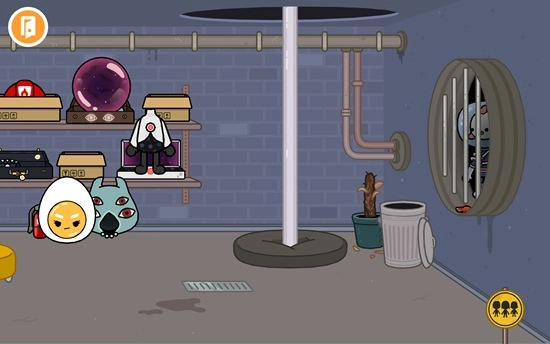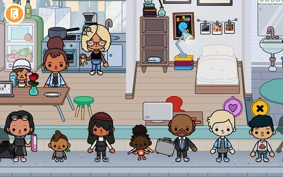 你还能选择点击左上角的退出房间按钮,回到自己家中。到家后会发现,那里同样有不少小朋友。在此场景下,点击任意人物或物品,它们就能移动。