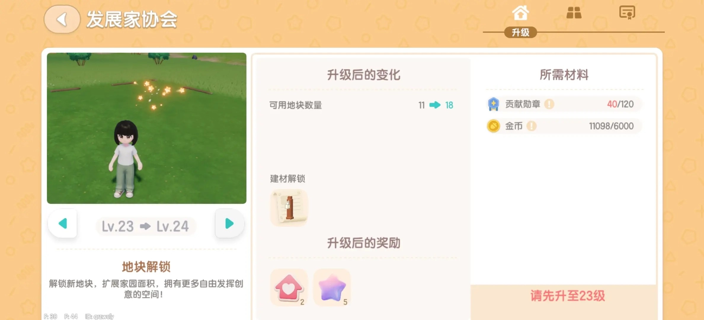 3、于协会界面的右上角,设有【升级】这一选项。借助消耗一定数量的金币与贡献勋章,能够逐步拓展可用的家园地块。