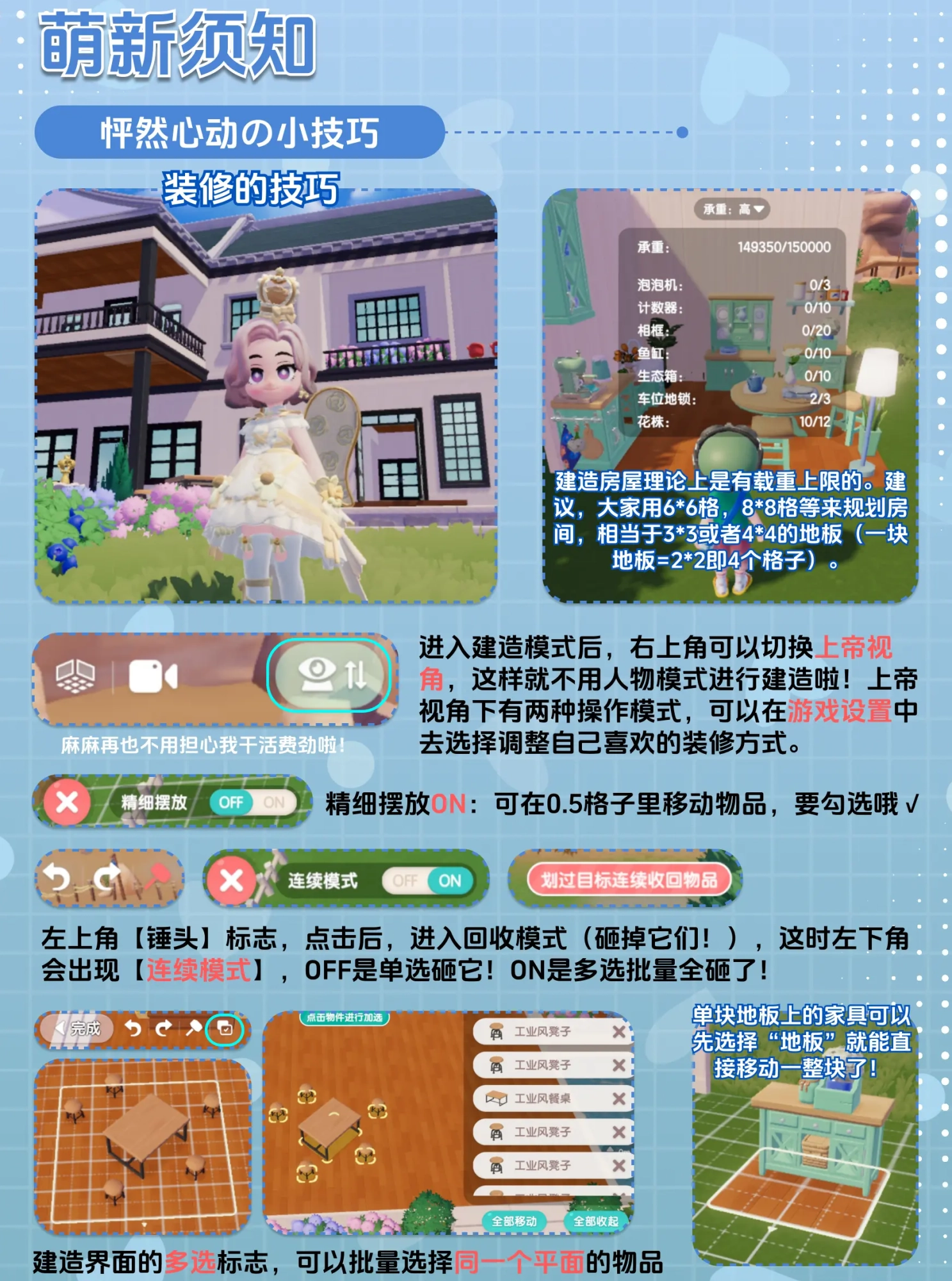 在建造房屋的时候,建议对格子大小进行合理规划,像6×6或者8×8规格的房间,不仅美观,还能防止出现超载的情况。