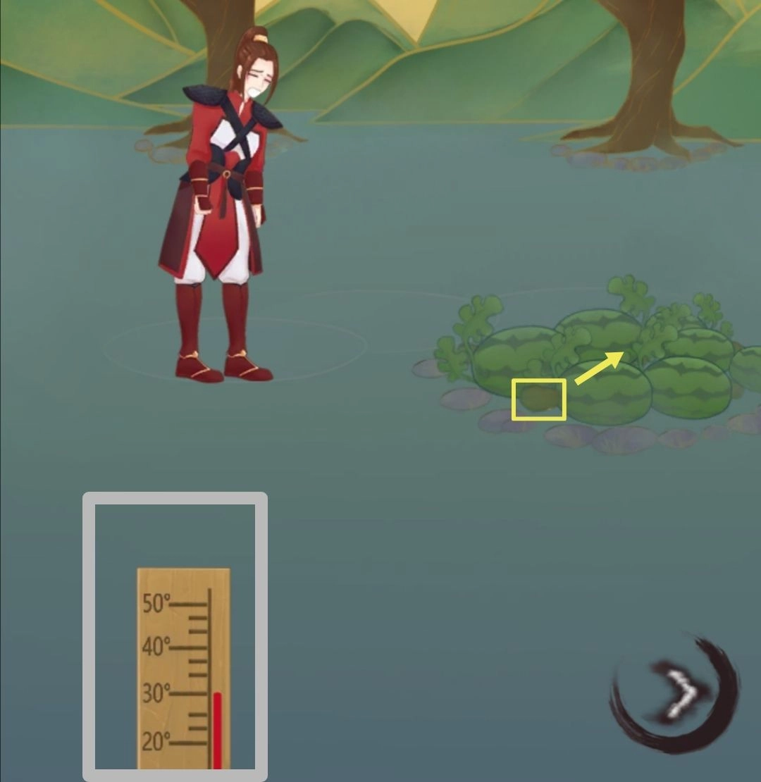 成就三:点击黄色区域,接着点击西瓜,随后将元宝交给卖西瓜的人。