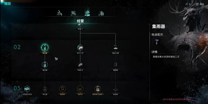 模因不妨看作技术树,涵盖玩家生活、生存、建造以及战斗等诸多方面。要解锁模因,得耗费密钥与转能电池,而这些资源可通过完成任务、挖矿作业、开展耕种,或是回收异物等途径逐步积累。在前期的时候,不用着急,一步一个脚印,稳稳当当才能在游戏进程中走得更长远。