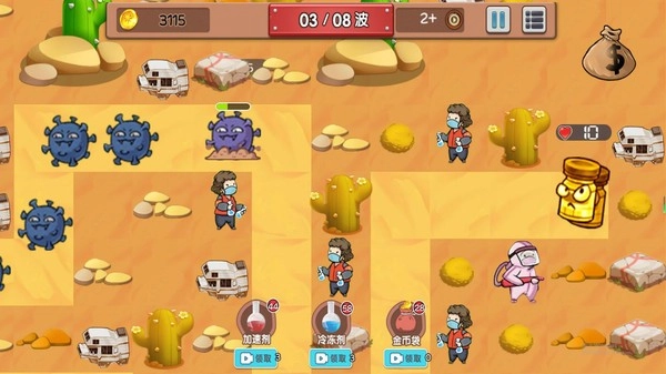 塔防策略战争的最新版本,是一款策略性十足的塔防战争游戏。其画面场景主打可爱卡通风,还巧妙融入了医院病毒相关元素,让玩家玩起来代入感超强。当然,游戏存在一定操作难度,要是有朋友想挑战一下,那就快来本站体验吧!